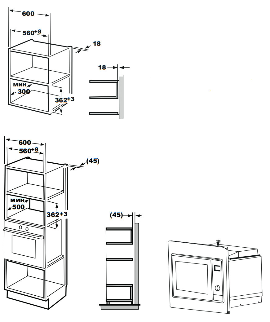 Описаниемикроволновая печь встраиваемая, 25 л, 59,4х38,2х40,3 см, черный