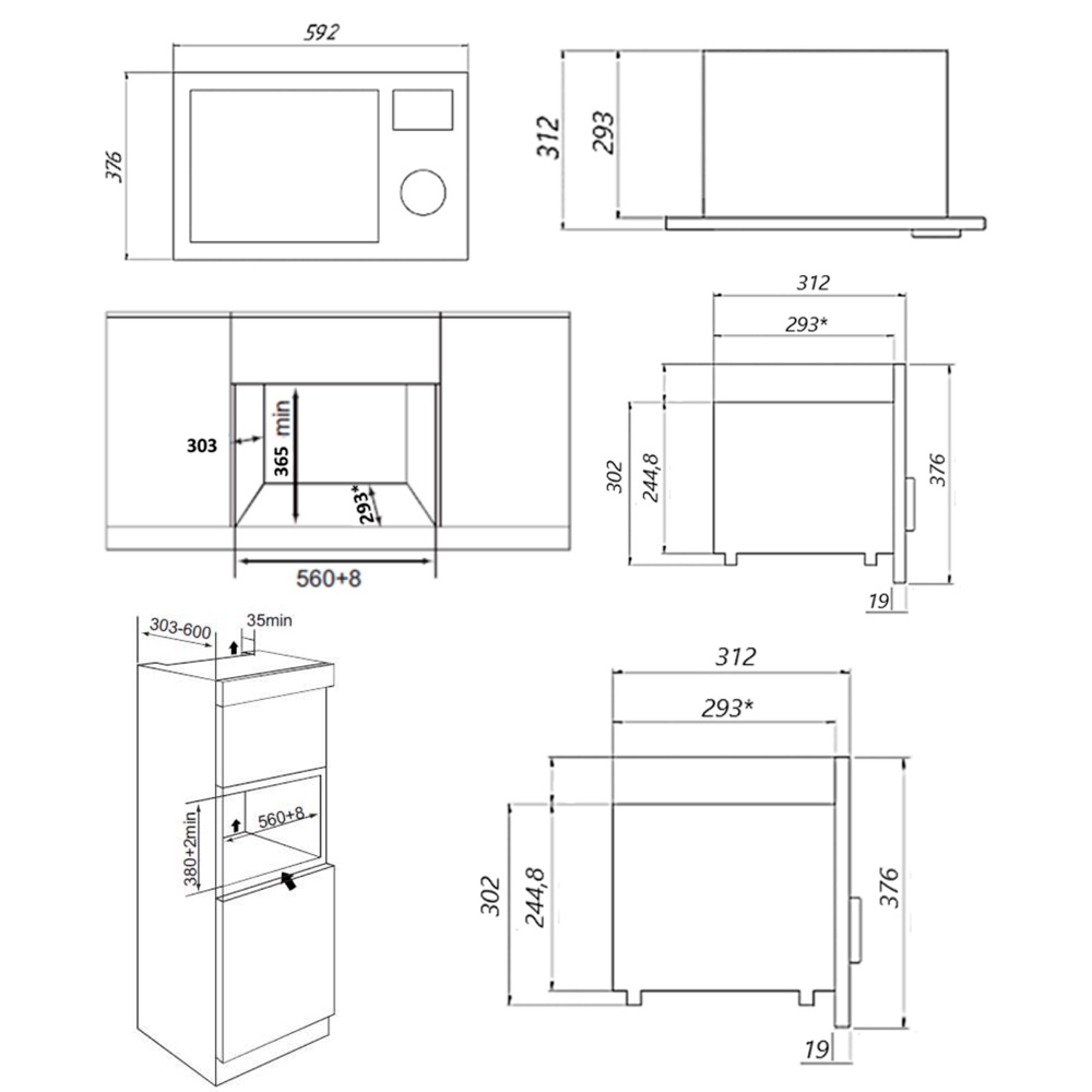 Описаниемикроволновая печь встраиваемая, 20 л, 59,2х33х37,6 см, нержавеющая сталь