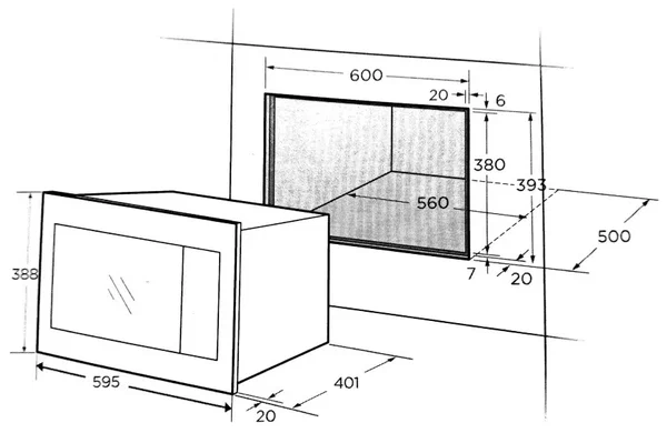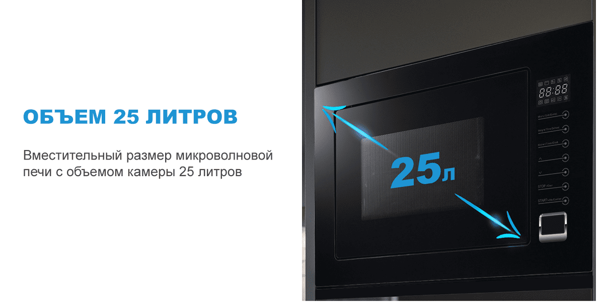 Описаниемикроволновая печь встраиваемая, 25 л, 59,5x40,1x38,8 см, черный