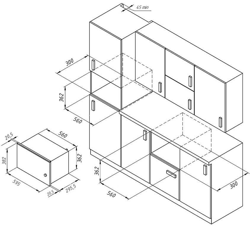 Описаниемикроволновая печь встраиваемая, 20 л, 59,5х31,6х38,2 см, черный