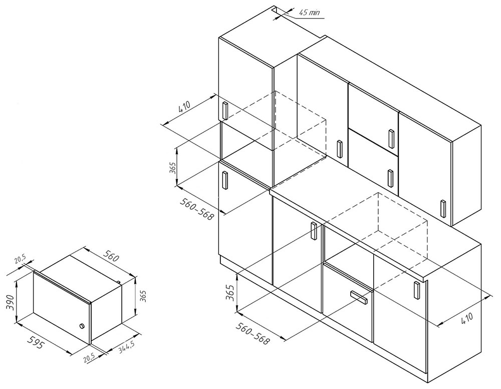 Описаниемикроволновая печь встраиваемая, 23 л, 59,5х39х36,5 см, черный