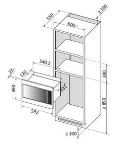 Описаниемикроволновая печь встраиваемая, 26 л, 59,2х48х39 см, черный