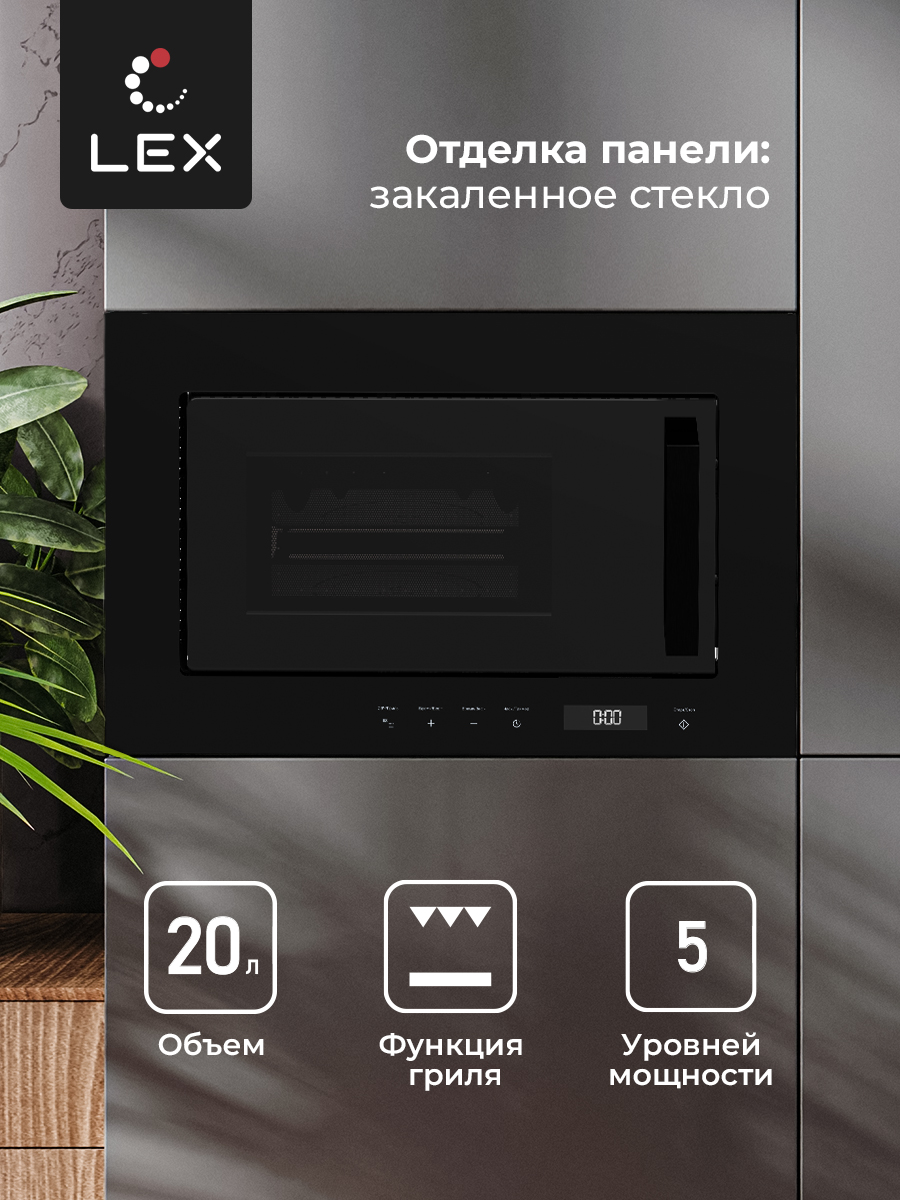 LEX BIMO 20.07 BLACK Встраиваемая микроволновая печь