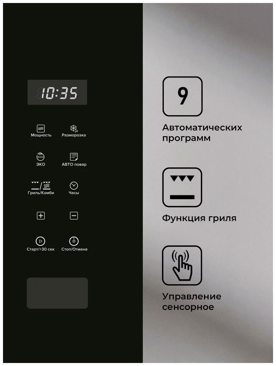 Описаниемикроволновая печь встраиваемая, 20 л, 59,5х31,6х38,2 см, нержавеющая сталь