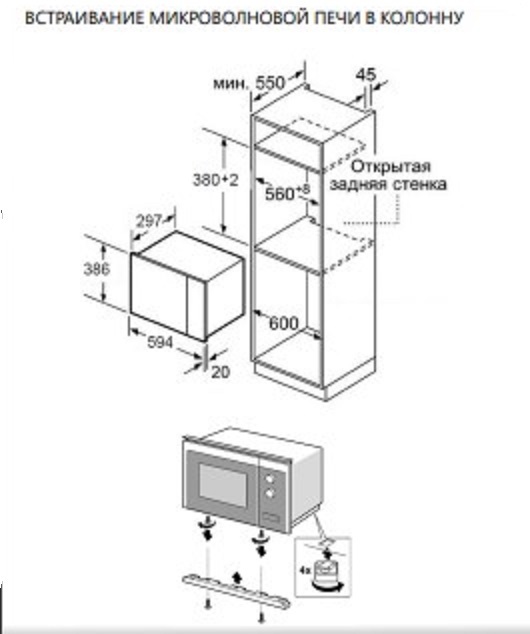 Описаниемикроволновая печь встраиваемая, 20 л, 59,4x30,3x38,5 см, белое стекло