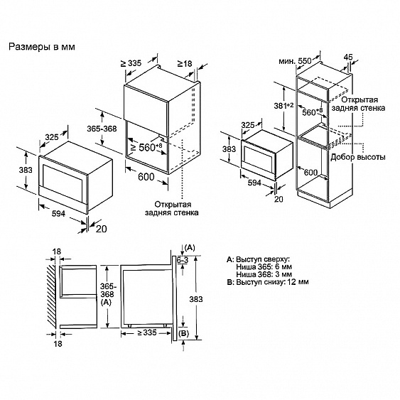 Описаниемикроволновая печь встраиваемая, 20 л, 59,5х38,4х36,8 см, черный