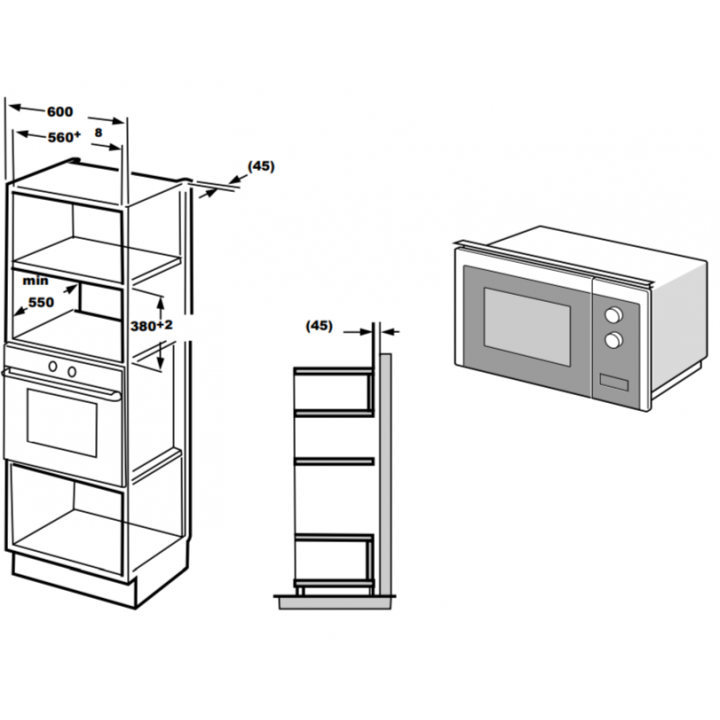 Описаниемикроволновая печь встраиваемая, 25 л, 59,5x39,6x38,6 см, черный