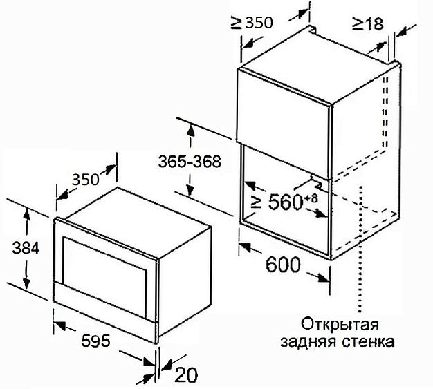 Описаниемикроволновая печь встраиваемая, 25 л, 59,2х37,5х38,2 см, черный