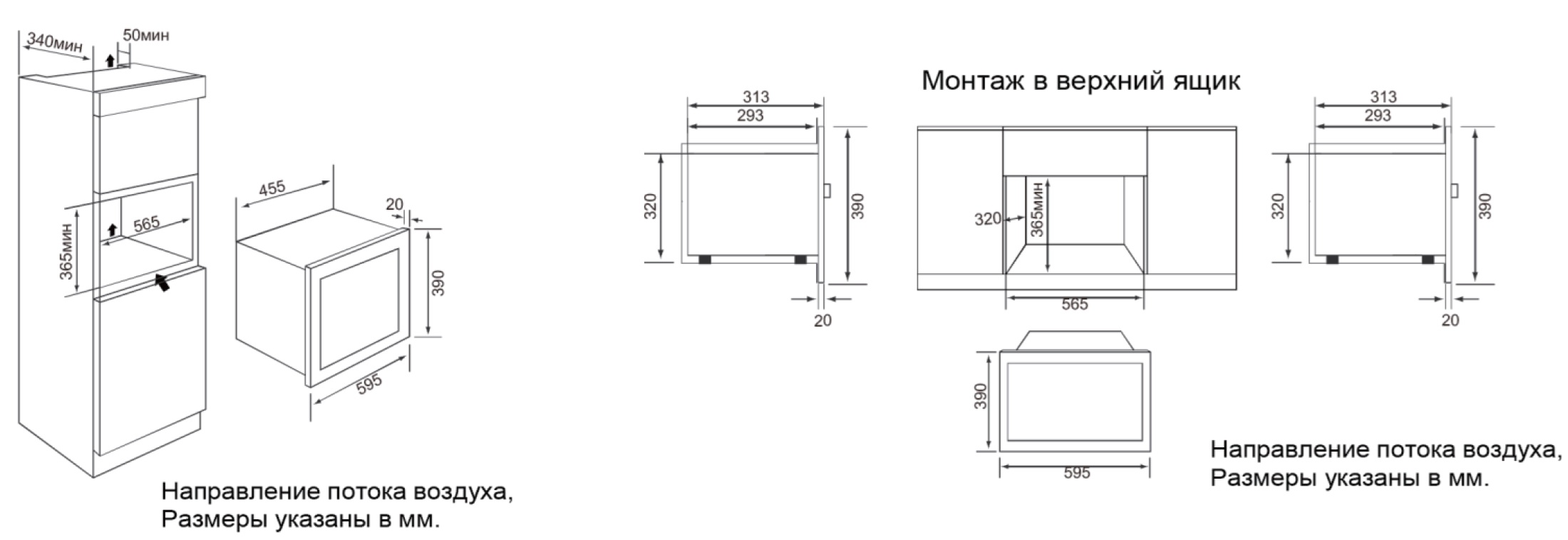 Описаниемикроволновая печь встраиваемая, 20 л, 59,5х31,3х39 см, черный