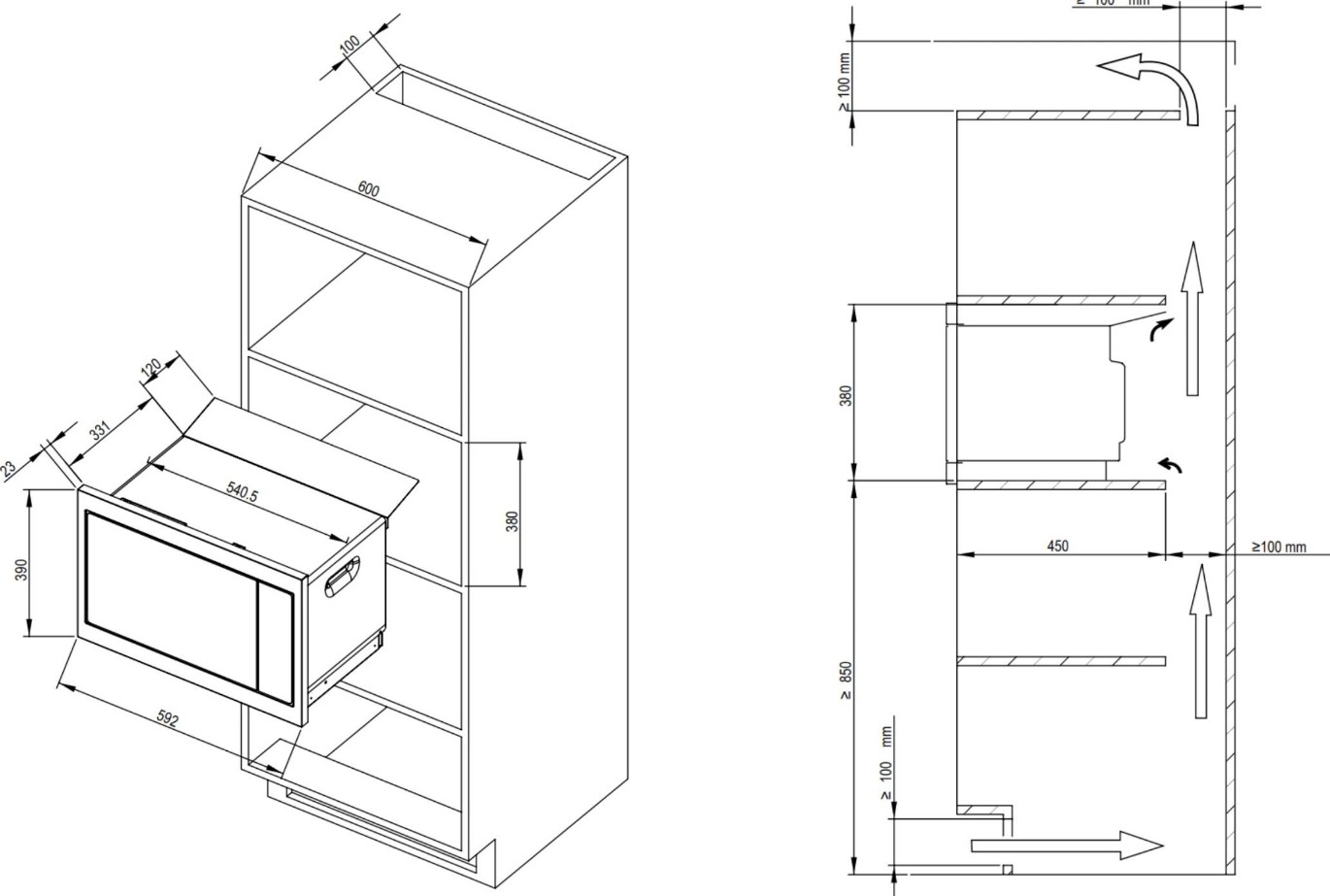 Описаниемикроволновая печь встраиваемая, 26 л, 59,2х48х39 см, белый