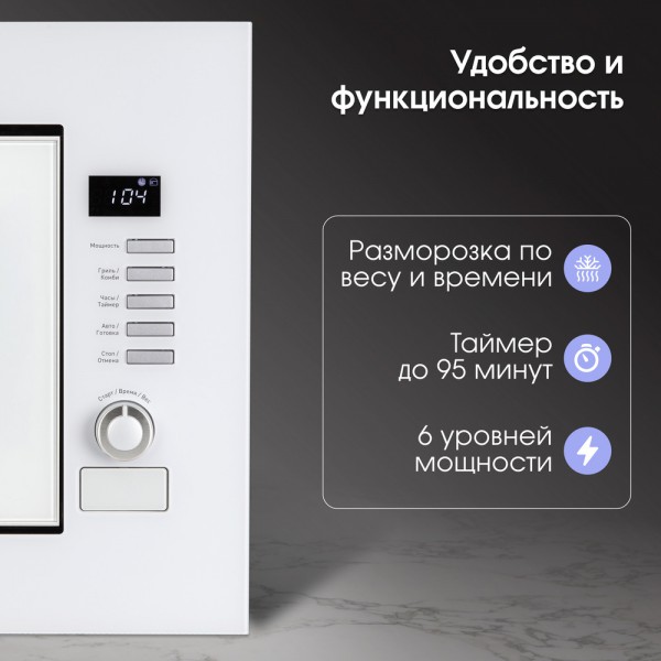 Описаниемикроволновая печь встраиваемая, 20 л, 60 см, белый