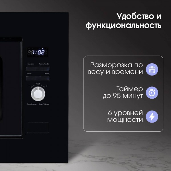 Описаниемикроволновая печь встраиваемая, 20 л, 60 см, черный