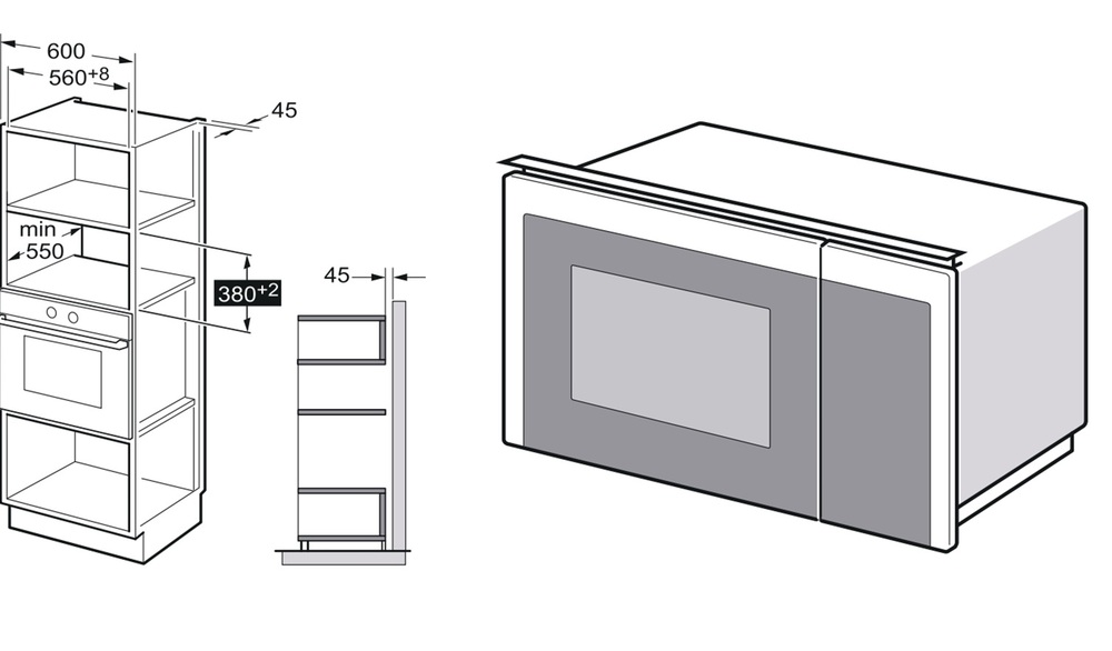 Описаниемикроволновая печь встраиваемая, 25 л, 59,5x36,9x38,2 см, черный