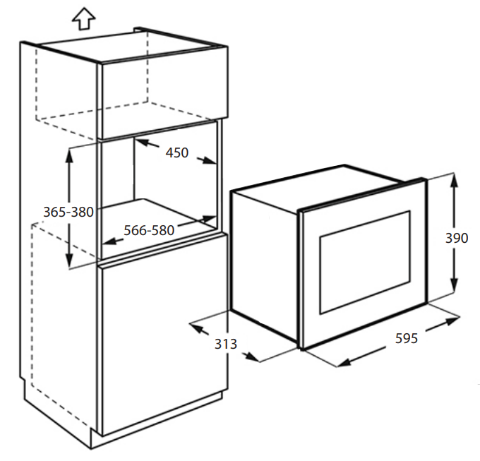 Описаниемикроволновая печь встраиваемая, 20 л, 59,5х39х29,6 см, черный