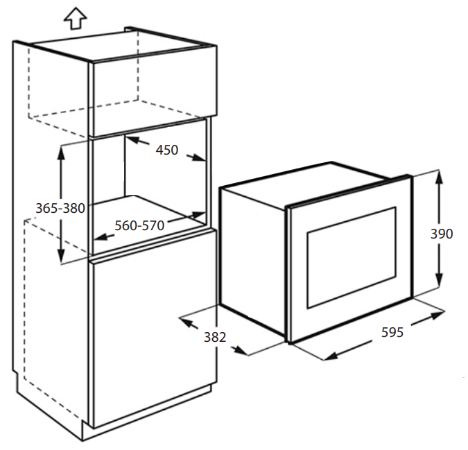 Описаниемикроволновая печь встраиваемая, 25 л, 59,5х39х38,2 см, черный