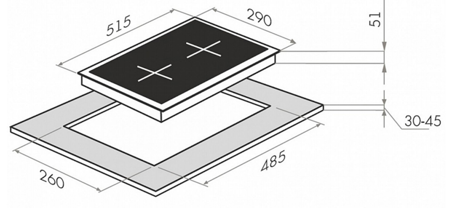 Описаниеповерхность электрическая независимая, 30 см, 2 конфорки, черный