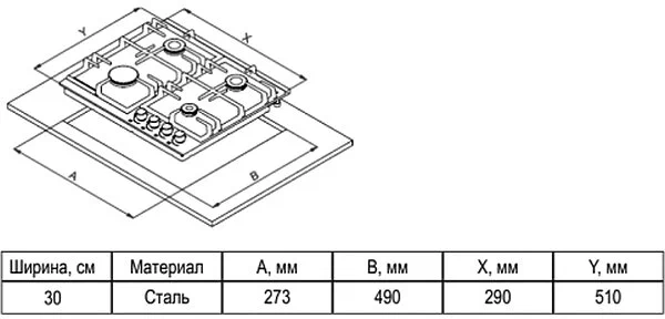 Описаниеповерхность газовая независимая, 30 см, газ на металле, 2 конфорки, решетки чугунные, нержавеющая сталь