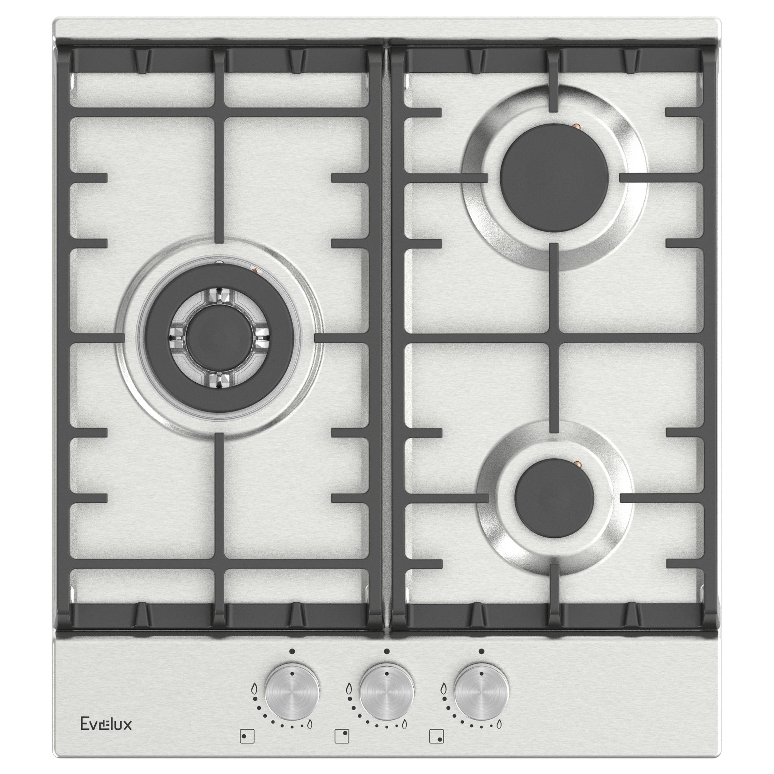 Описаниеповерхность газовая независимая, 45 см, газ на стекле, 3 конфорки, решетки чугунные, белый