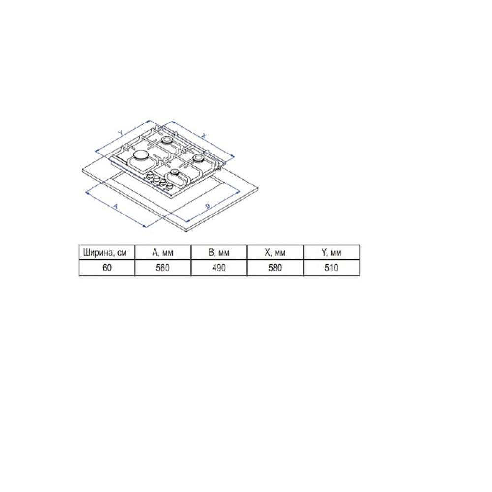 Описаниеповерхность газовая независимая, 60 см, газ на эмали, 4 конфорки, решетки чугунные, бежевый