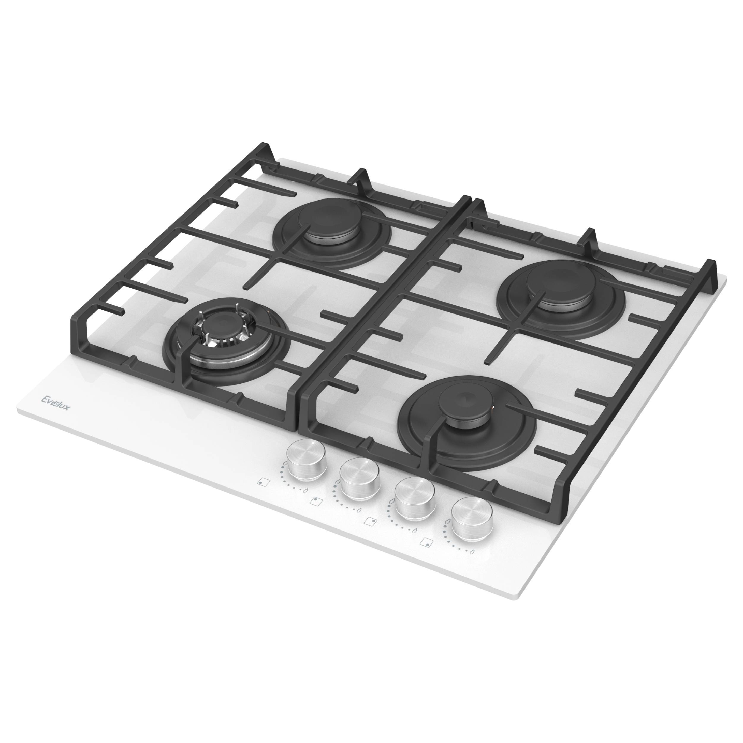 Описаниеповерхность газовая независимая, 60 см, газ на стекле, 4 конфорки, решетки чугунные, белый