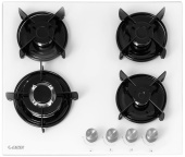 Описаниеповерхность газовая независимая, 60 см, газ на стекле, 4 конфорки, решетки эмалированные, белый