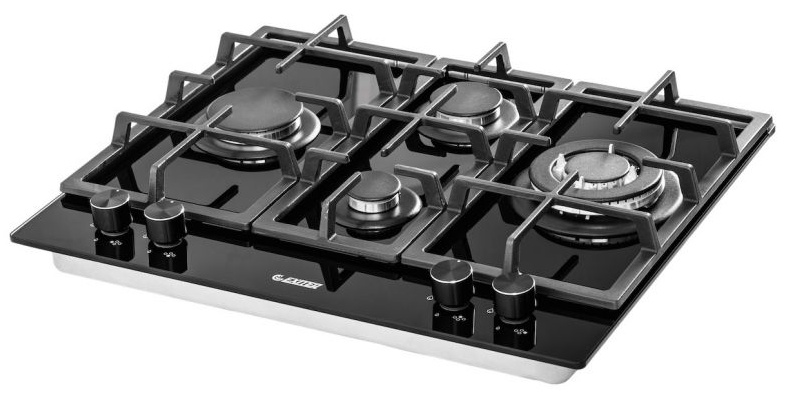 Описаниеповерхность газовая независимая, 60 см, газ на стекле, 4 конфорки, решетки чугунные, черный