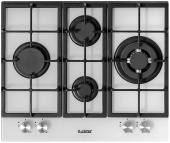 Описаниеповерхность газовая независимая, 60 см, газ на стекле, 4 конфорки, чугунные решетки, белый
