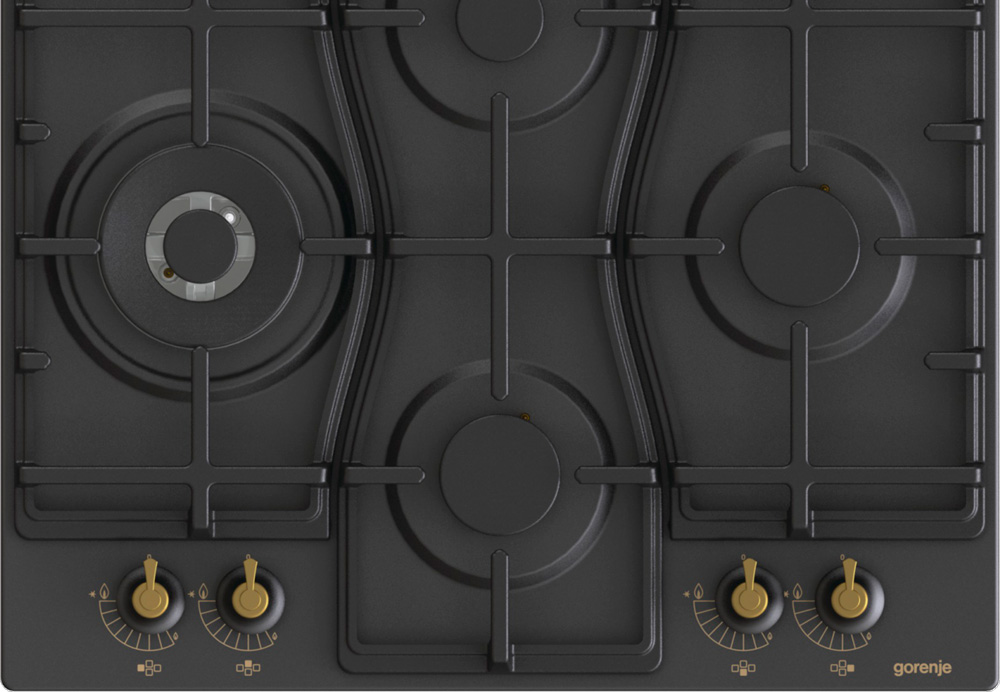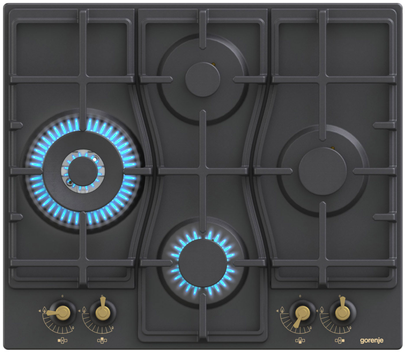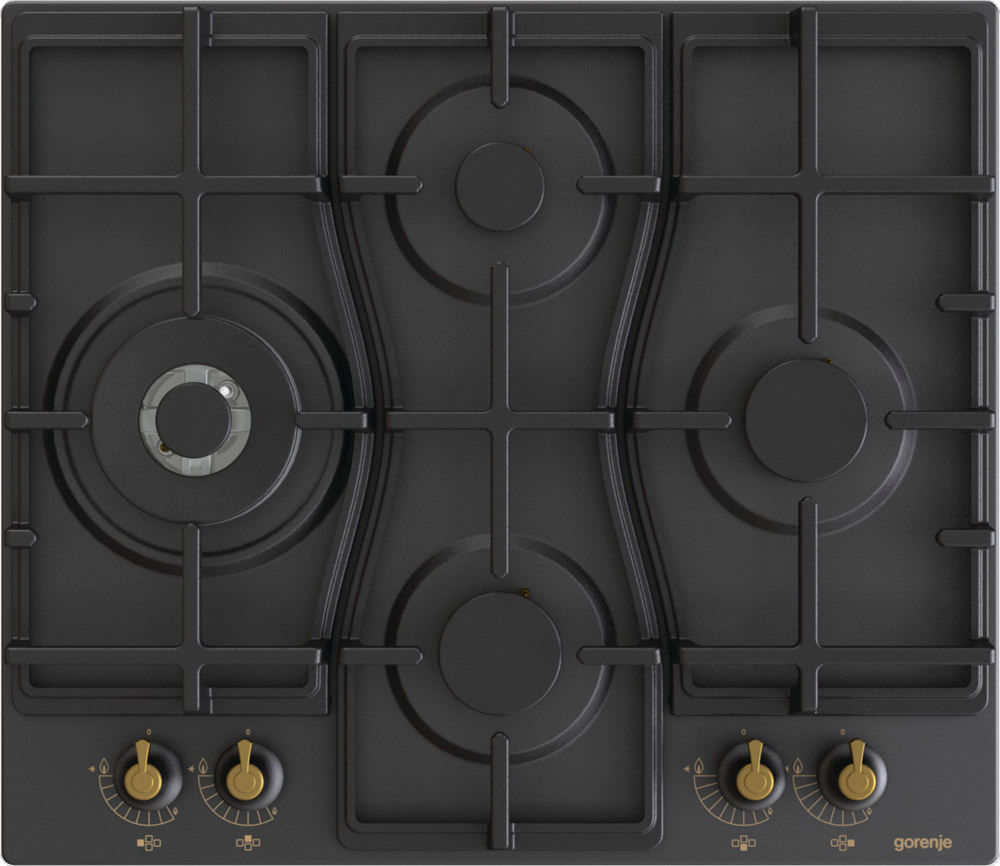 Описаниеповерхность газовая независимая, 60 см, газ на эмали, 4 конфорки, чугунные решетки, черный