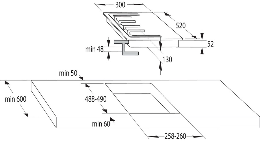 Описаниеповерхность газовая независимая, 30 см, газ на стекле, 2 конфорки, чугунные решетки, черный