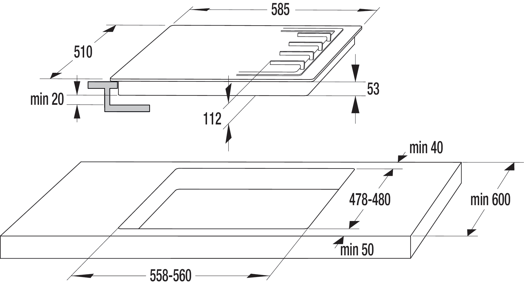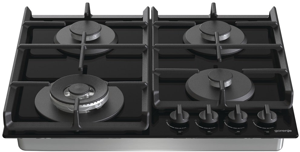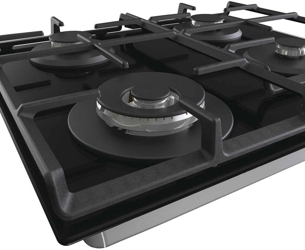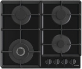 Описаниеповерхность газовая независимая, 60 см, газ на стекле. 4 конфорки, решетки чугунные, черный