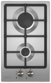 Описаниеповерхность газовая независимая, 30 см, газ на металле, 2 конфорки, решетки чугунные, нержавеющая сталь
