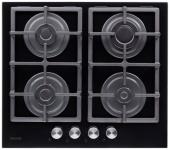 Описаниеповерхность газовая независимая, 60 см, газ на стекле, 4 конфорки, решетки чугунные, черный