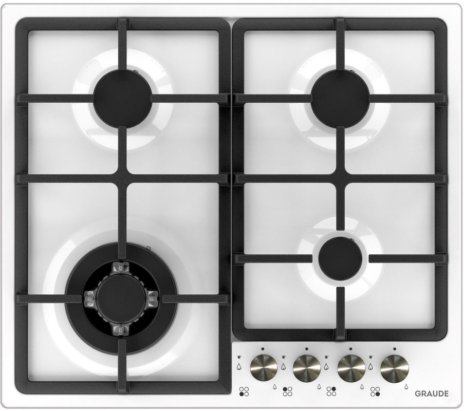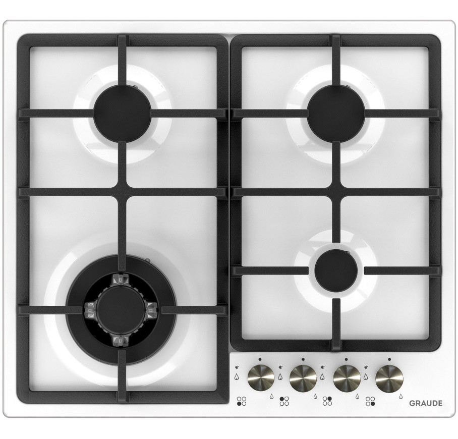 Описаниеповерхность газовая независимая, 60 см, газ на эмали, 4 конфорки, решетки чугунные, белый
