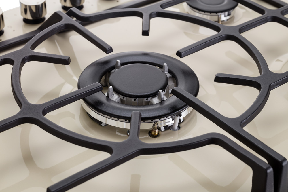 Описаниеповерхность газовая независимая, 70 см, газ на эмали, 5 конфорок, решетки чугунные, кремовый