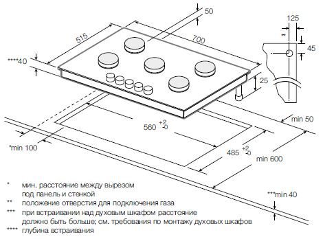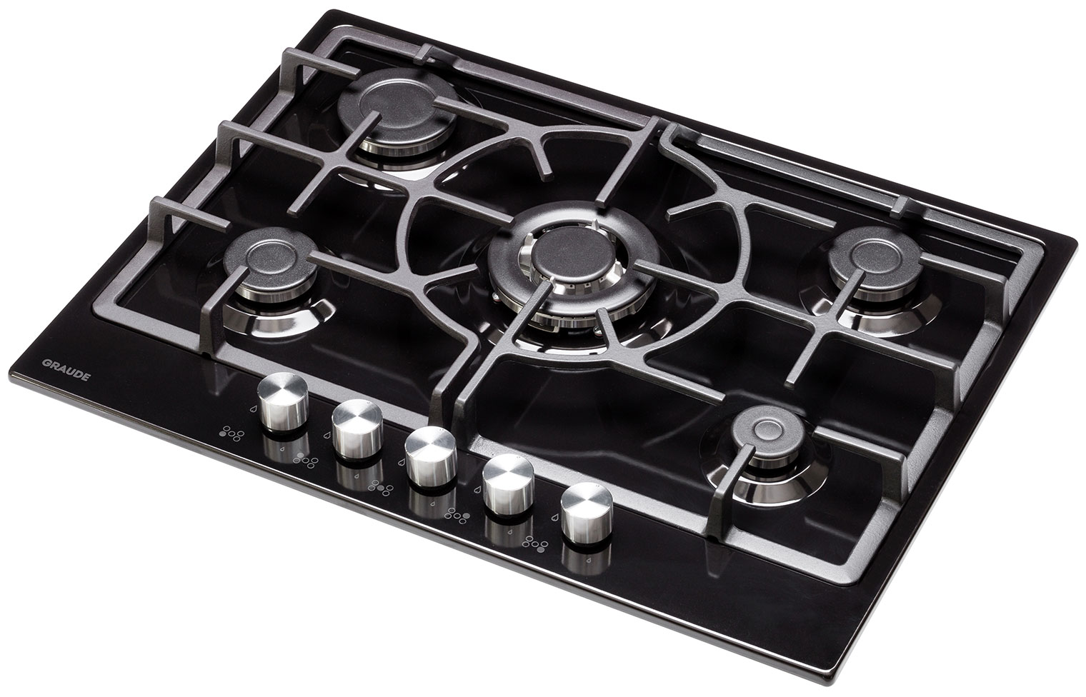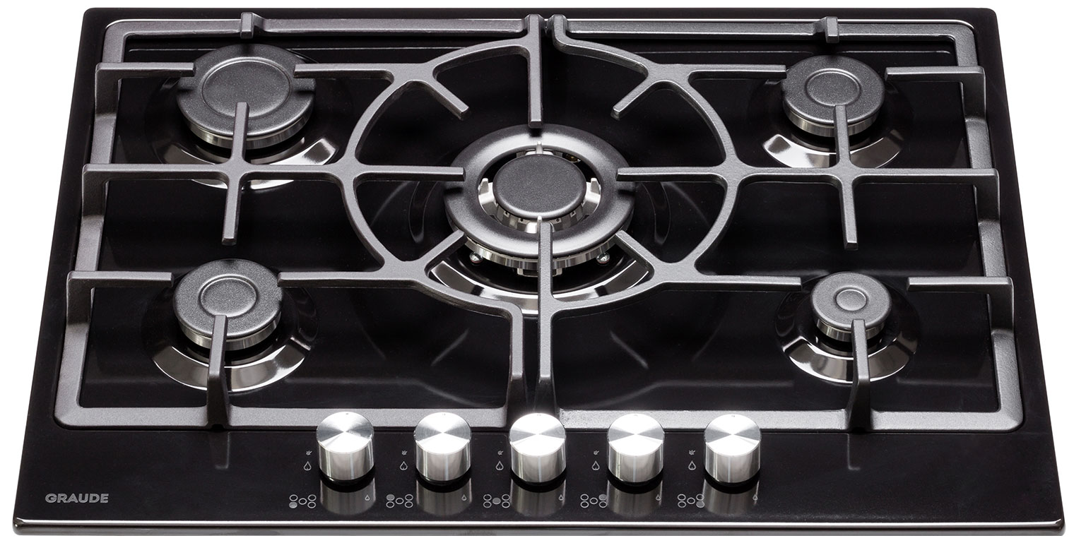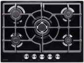 Описаниеповерхность газовая независимая, 70 см, газ на эмали, 5 конфорок, решетки чугунные, черный