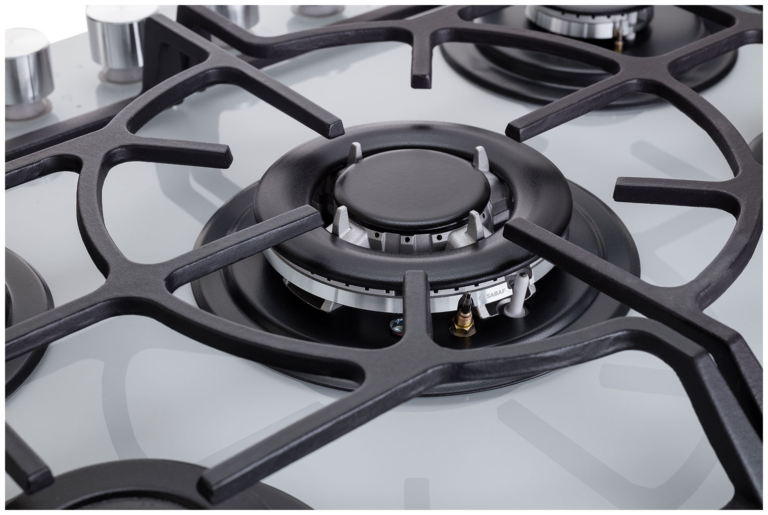 Описаниеповерхность газовая независимая, 70 см, газ на стекле, 5 конфорок, решетки чугунные, белый