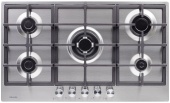 Описаниеповерхность газовая независимая, 86 см, газ на металле, 5 конфорок, решетки чугунные, нержавеющая сталь