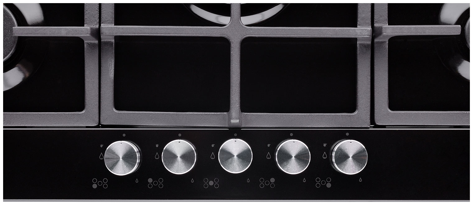 Описаниеповерхность газовая независимая, 90 см, газ на эмали, 5 конфорок, решетки чугунные, черный