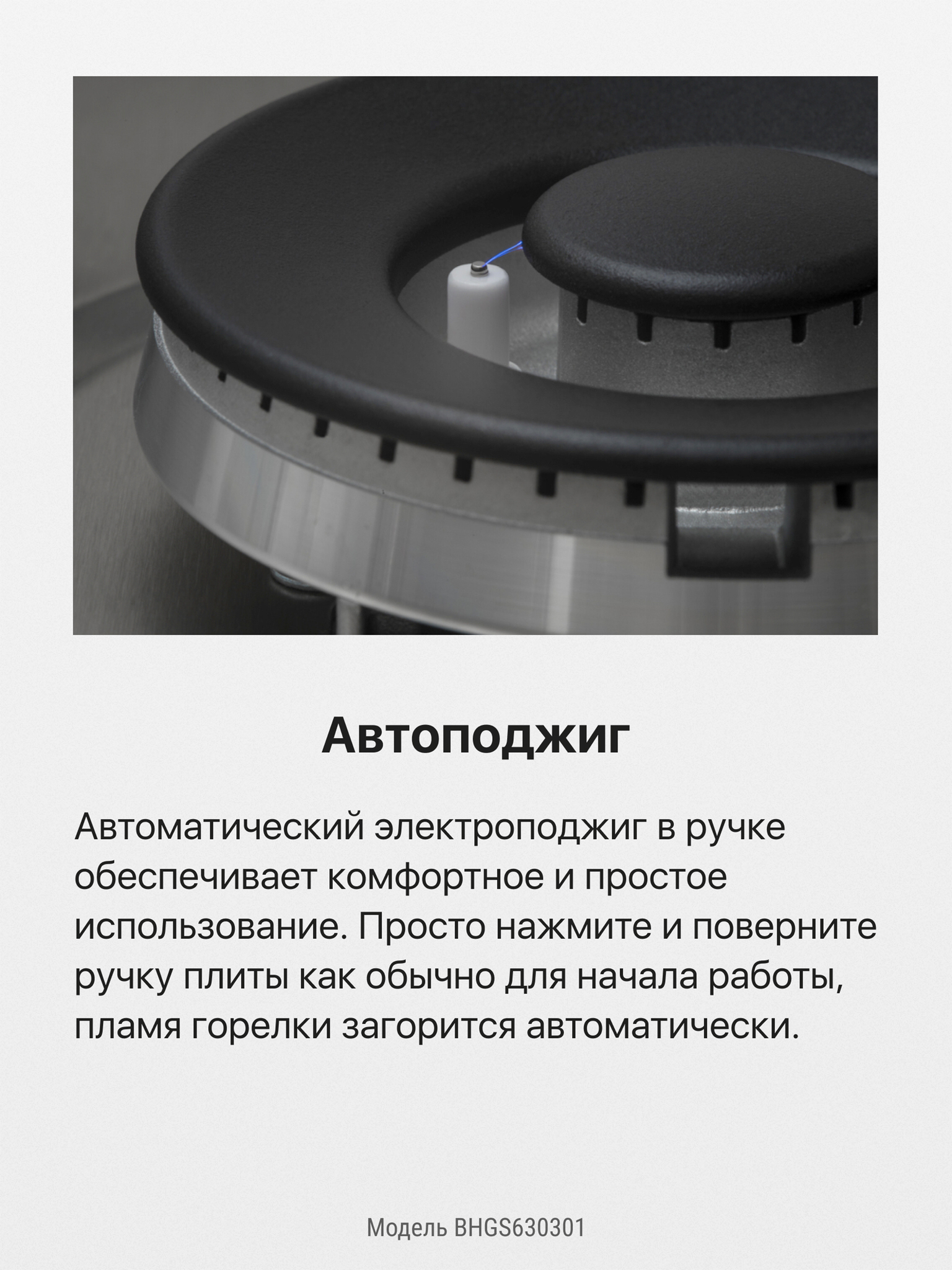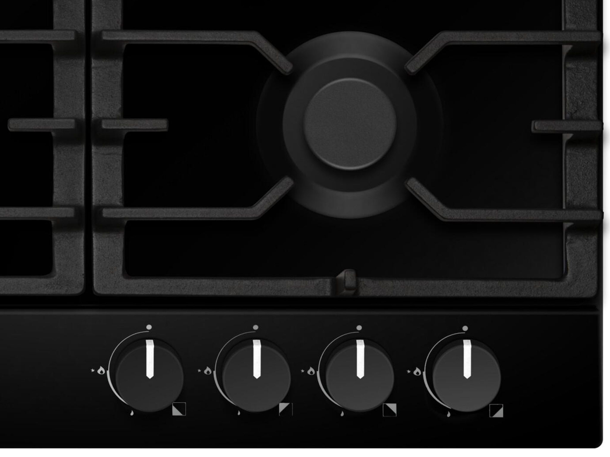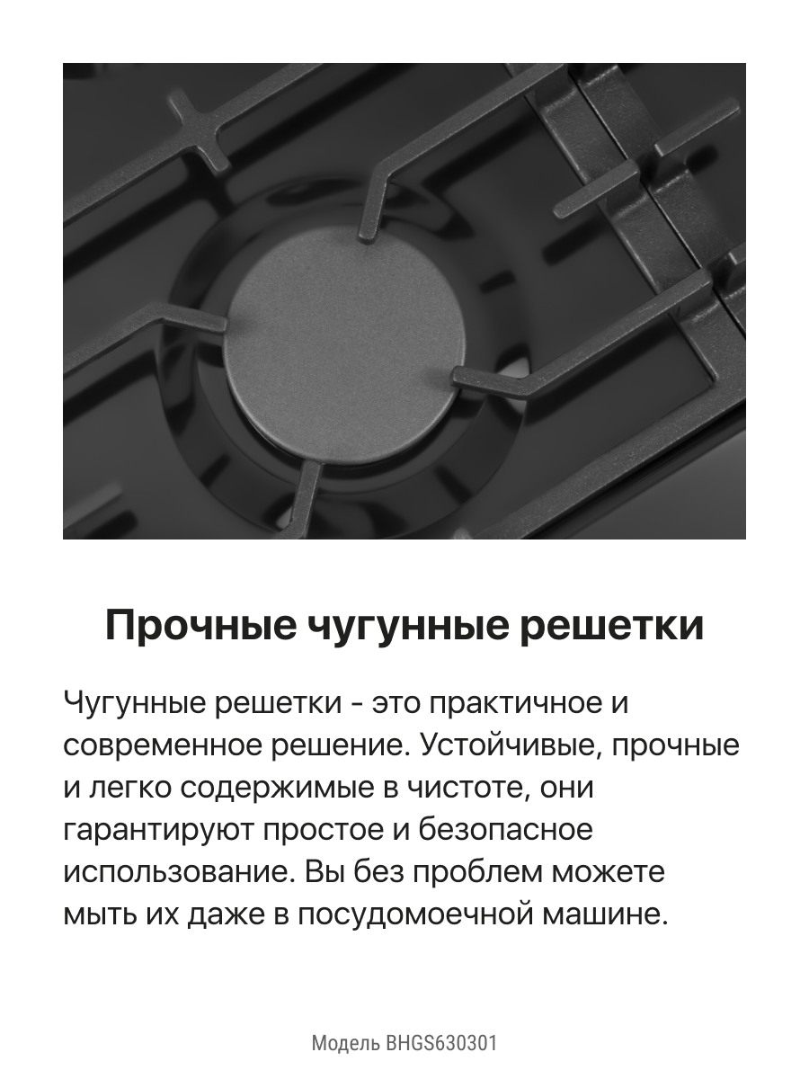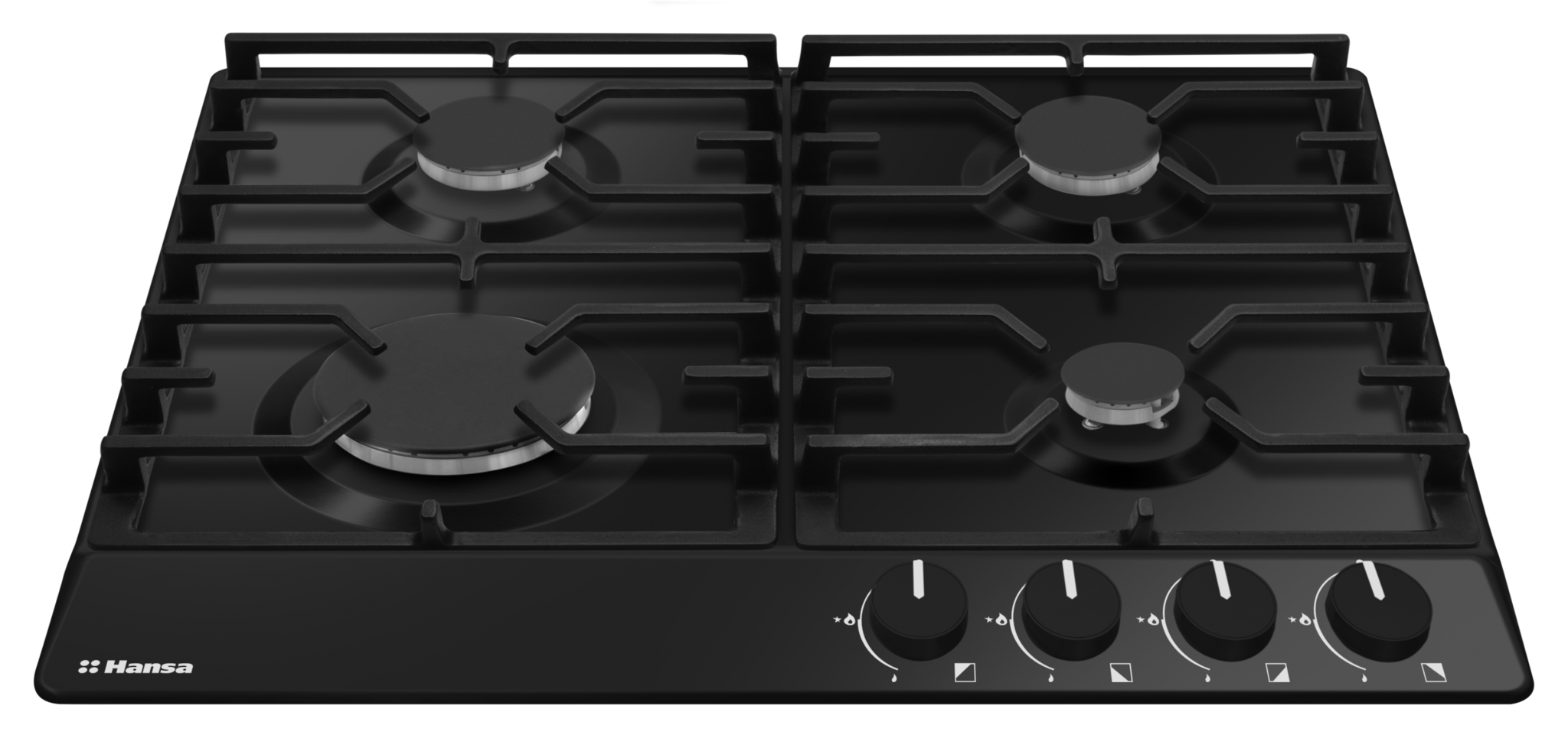 Описаниеповерхность газовая независимая, 60 см, газ на эмали, 4 конфорки, решетки чугунные, черный
