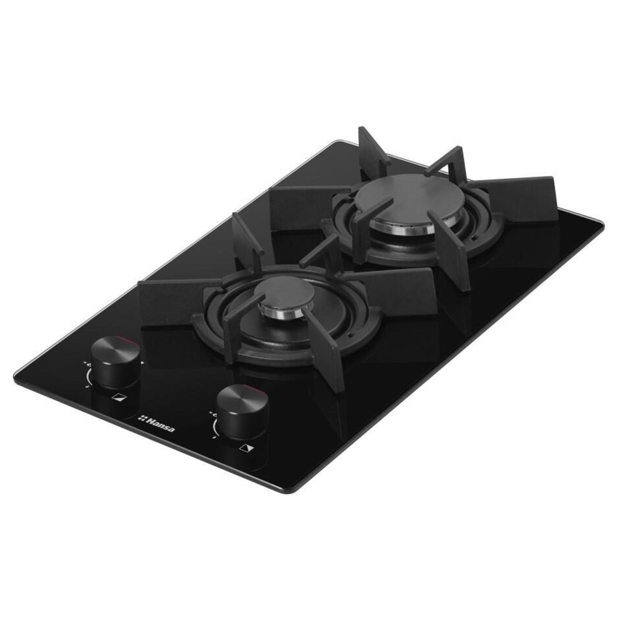 Описаниеповерхность газовая независимая, 30 см, газ на стекле, 2 конфорки, решетки чугунные, черный