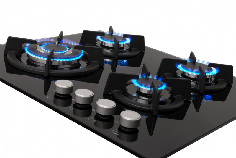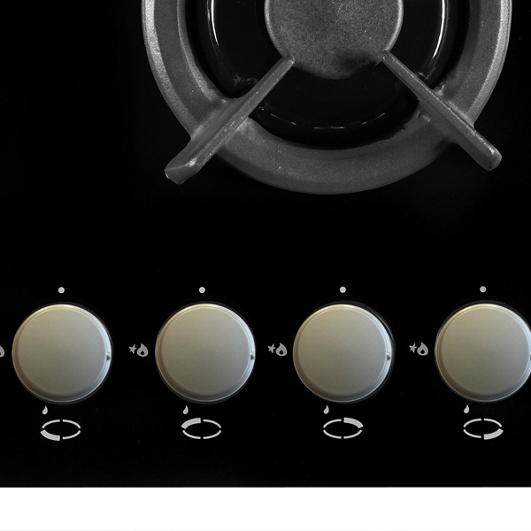Описаниеповерхность газовая независимая, 60 см, газ на стекле, 4 конфорки, решетки чугунные, черный