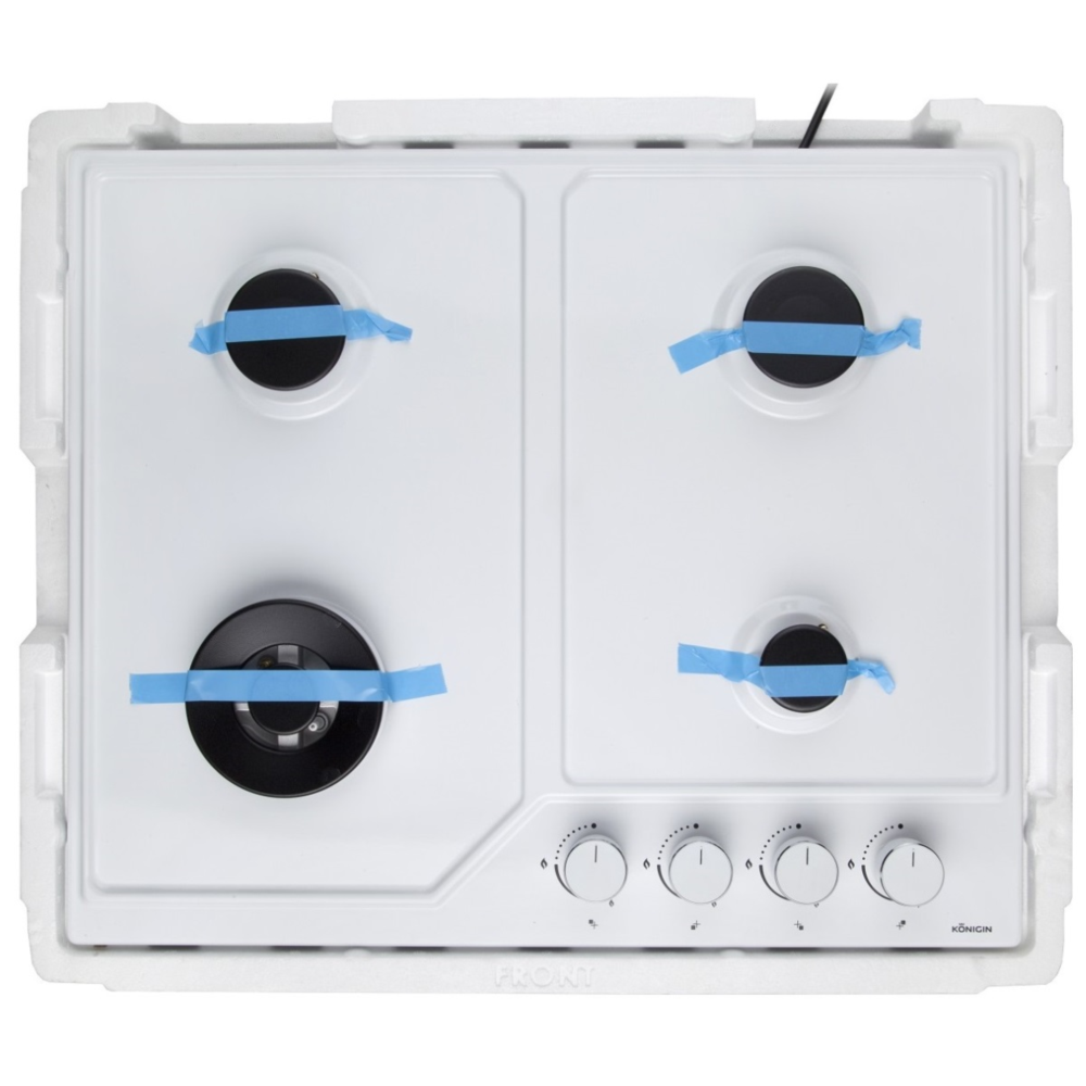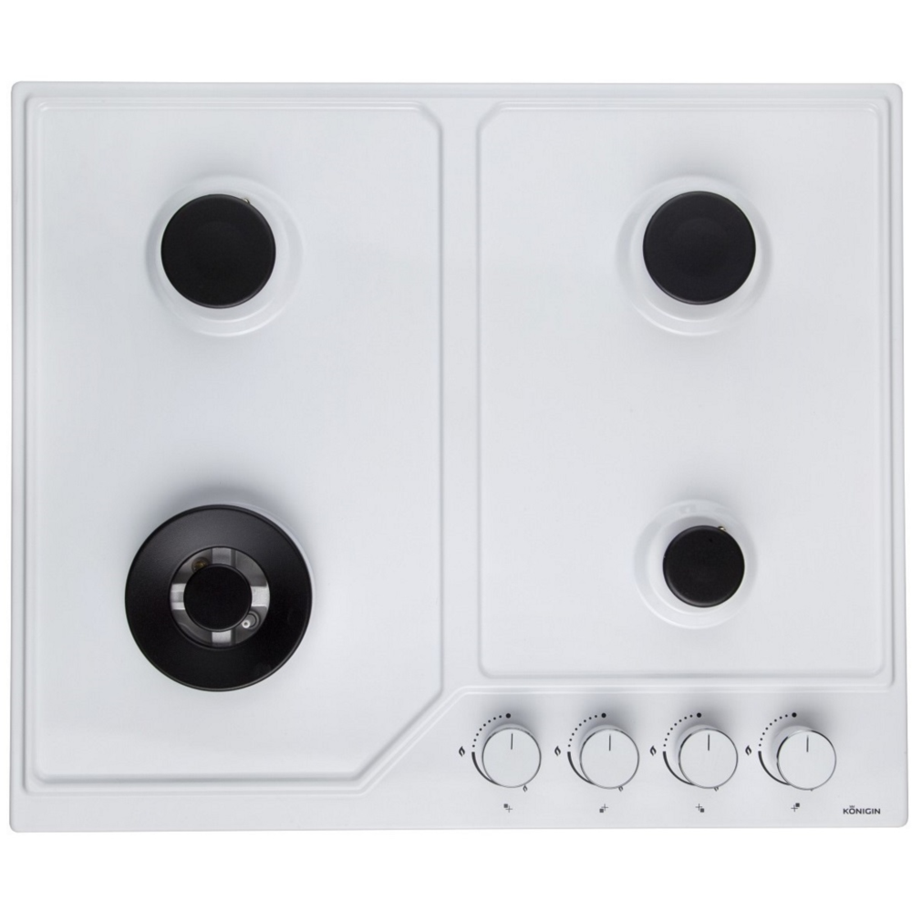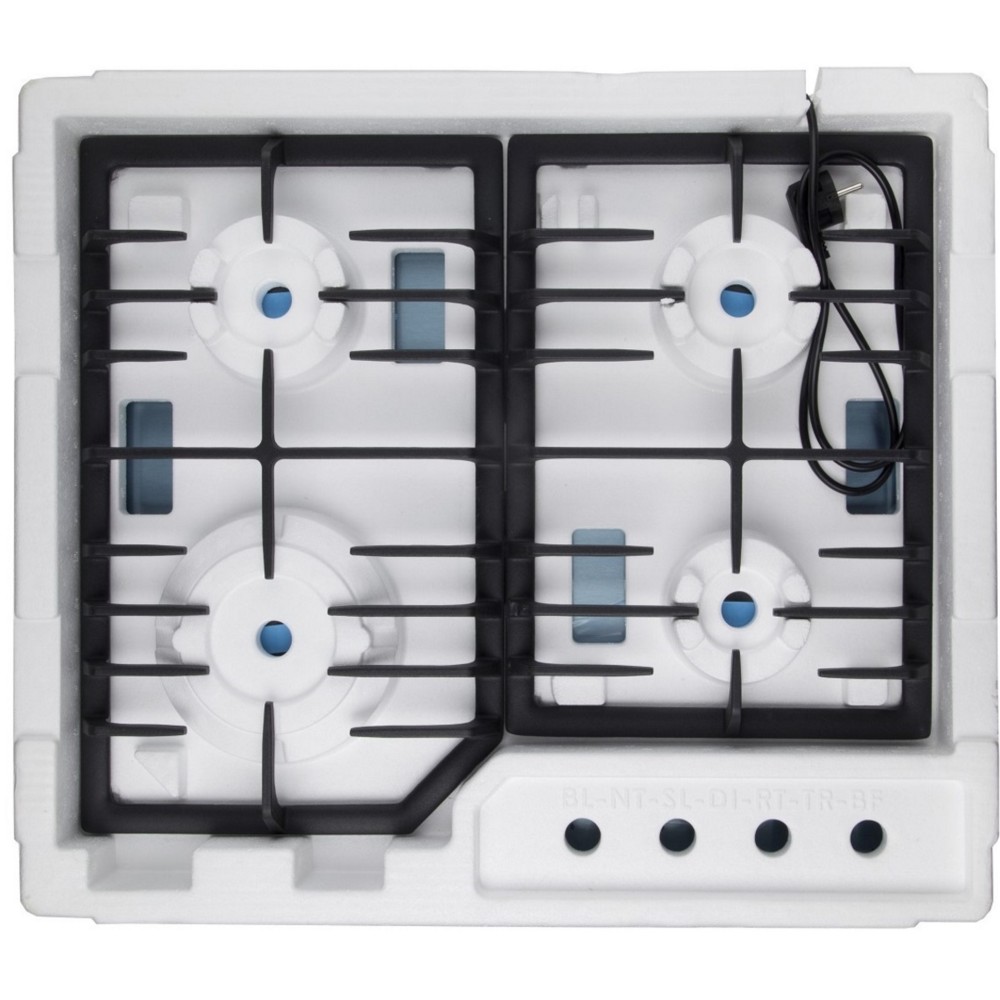 Описаниеповерхность газовая независимая, 60 см, газ на эмали, 4 конфорки, решетки чугунные, белый