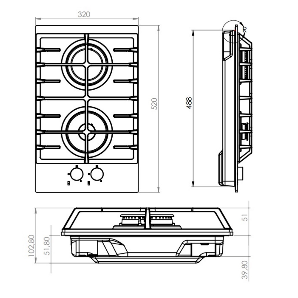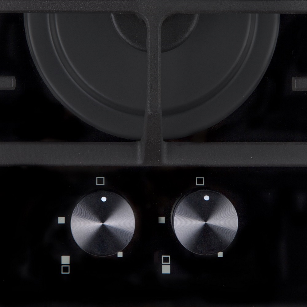 Описаниеповерхность газовая независимая, 32 см, газ на стекле, 2 конфорки, решетки чугунные, черное стекло