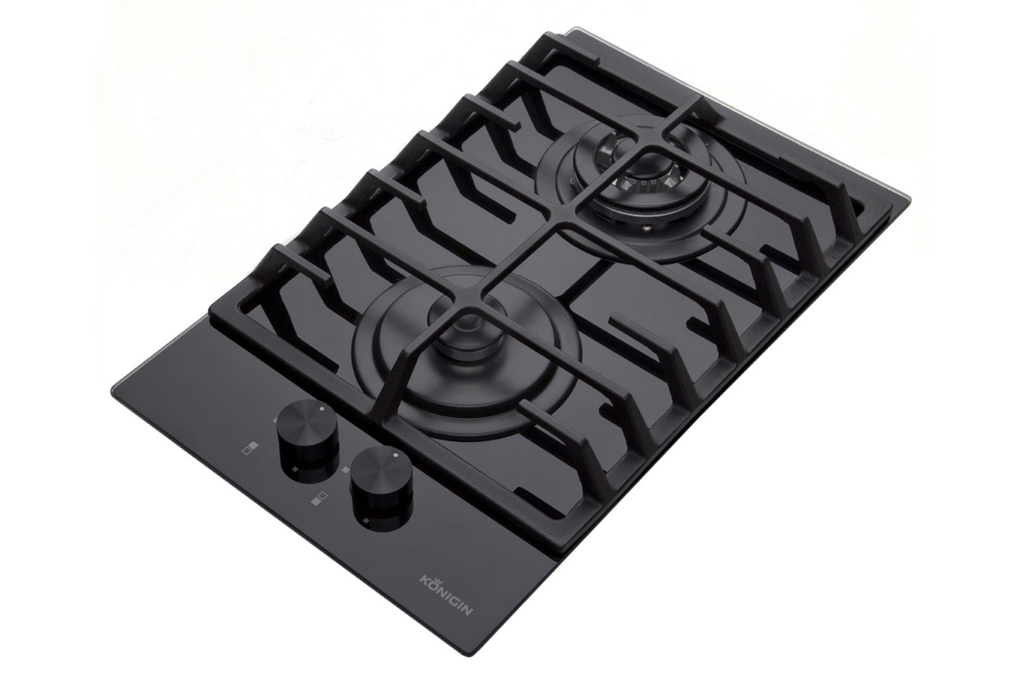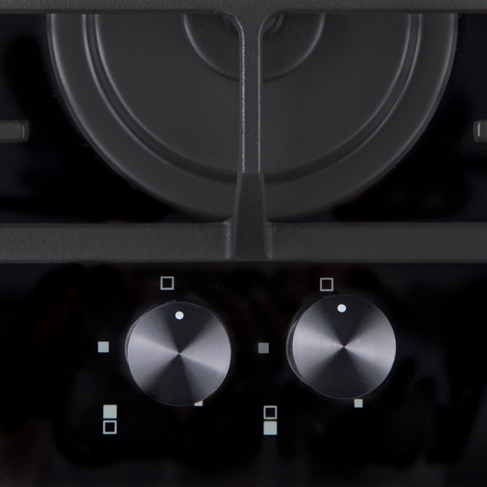Описаниеповерхность газовая независимая, 32 см, газ на стекле, 2 конфорки, решетки чугунные, черное стекло