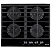 Описаниеповерхность газовая независимая, 60 см, газ на стекле, 4 конфорки, решетки чугунные, черное стекло