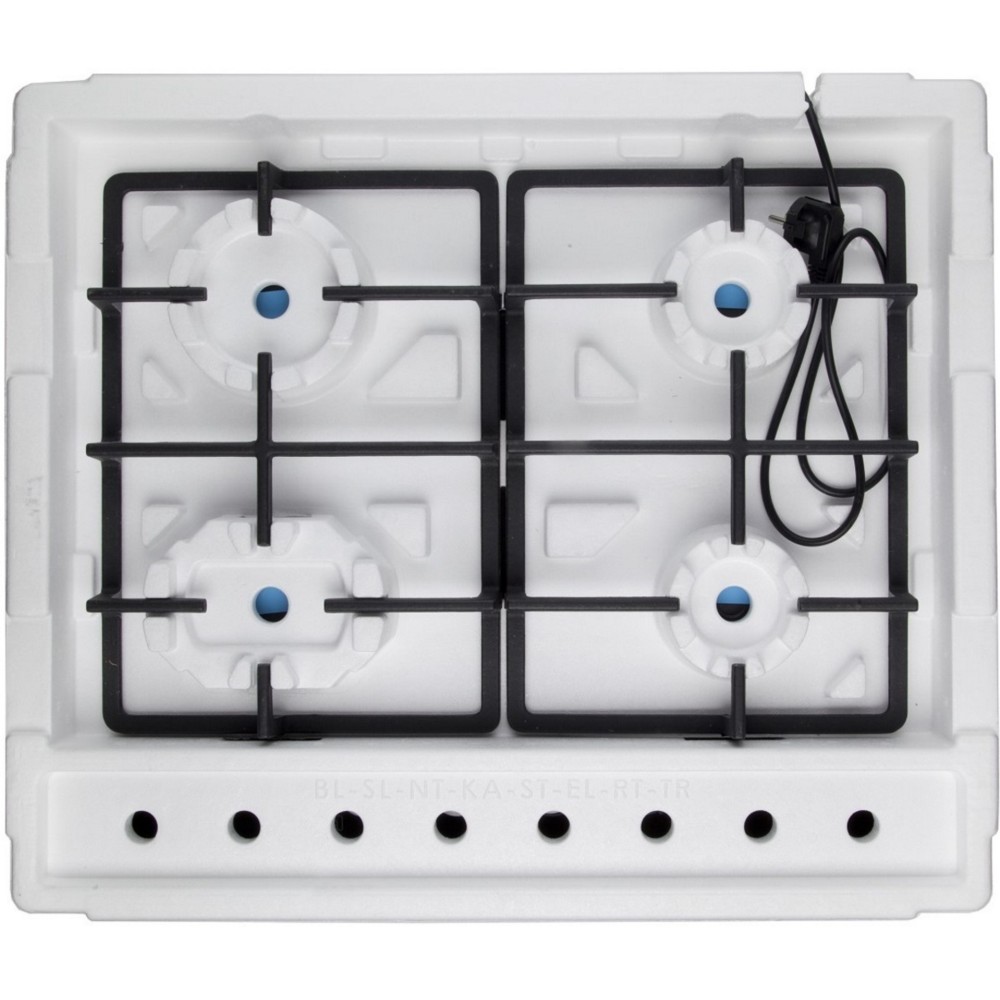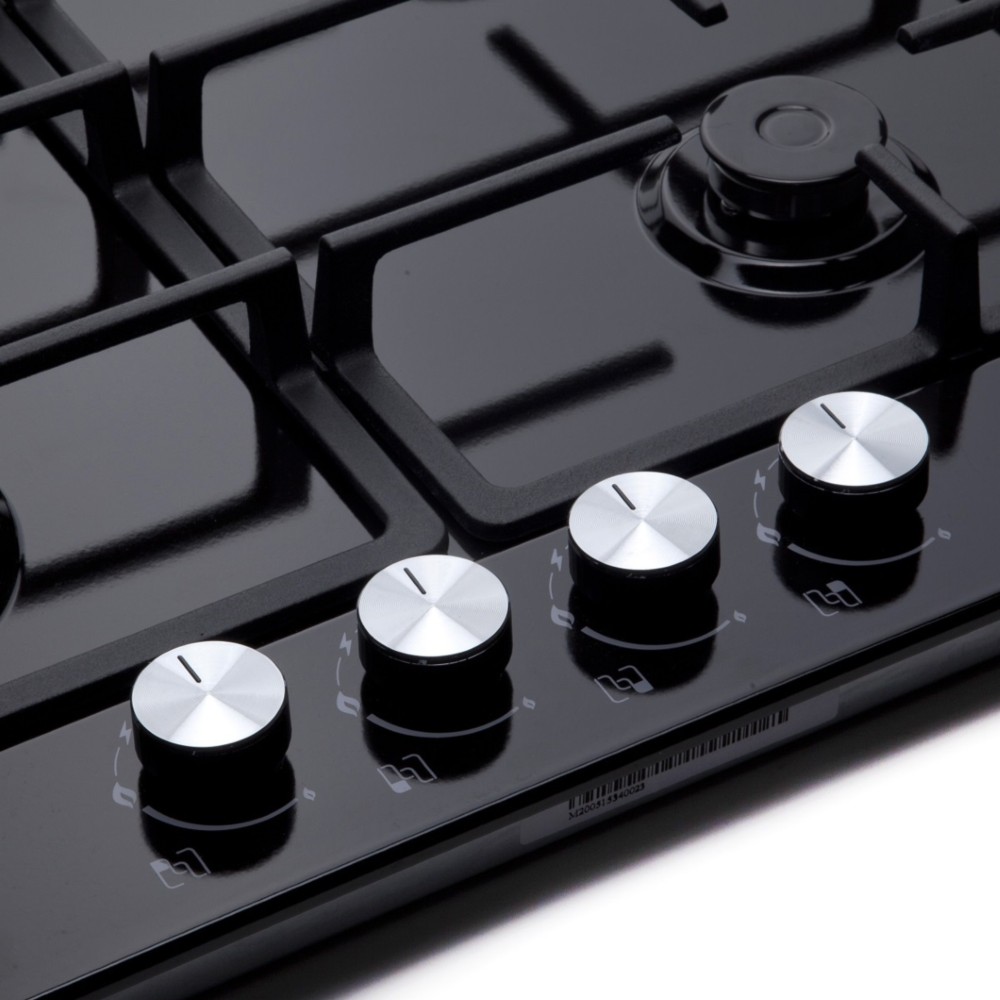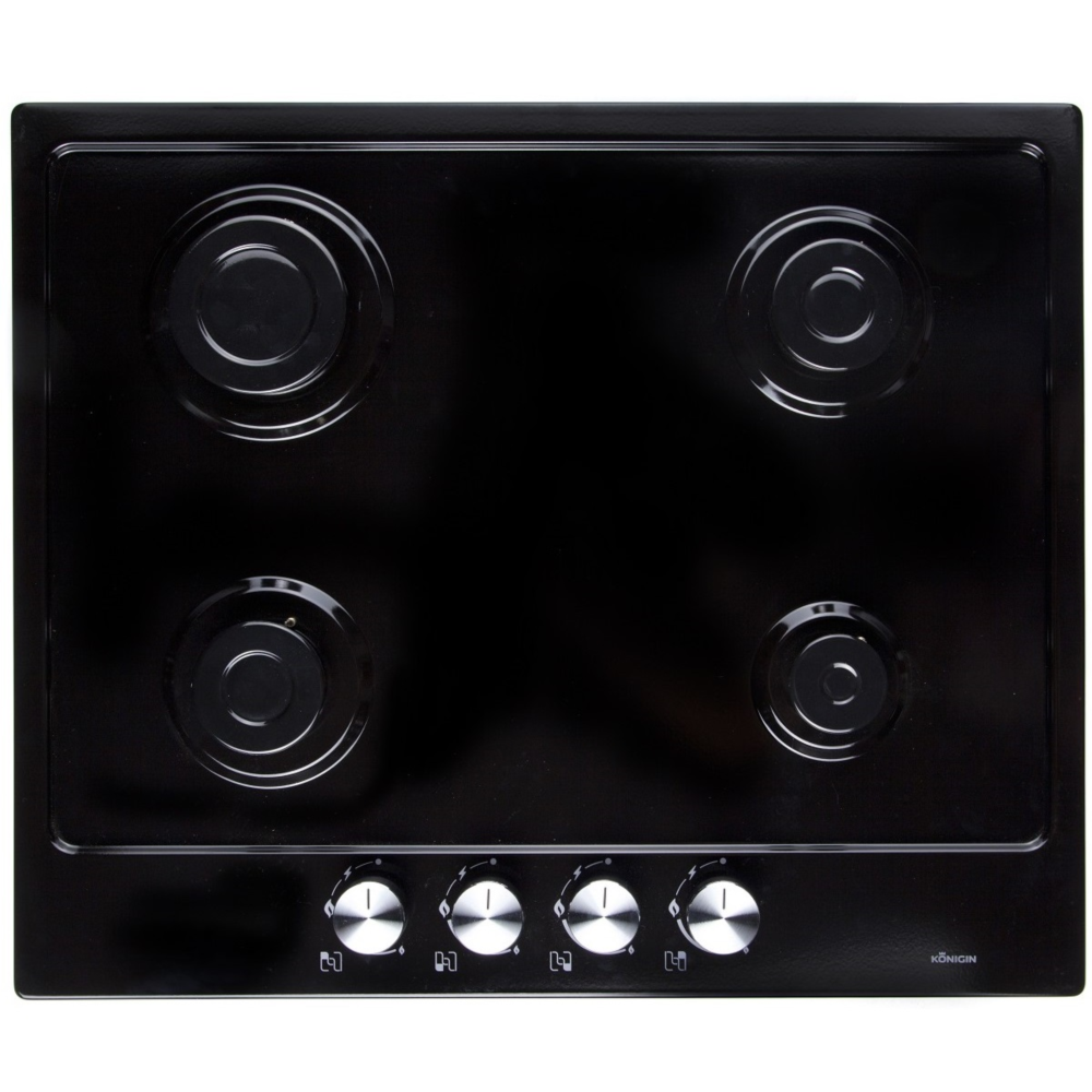 Описаниеповерхность газовая независимая, 60 см, газ на эмали, 4 конфорки, решетки чугунные, черный глянцевый
