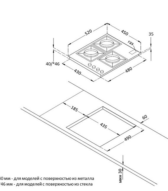 Описаниеповерхность газовая независимая, 45 см, газ на металле, 3 конфорки, решетки чугунные, нержавеющая сталь
