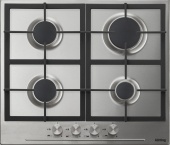 Описаниеповерхность газовая независимая, 60 см, газ на эмали, 4 конфорки, решетки чугунные, нержавеющая сталь