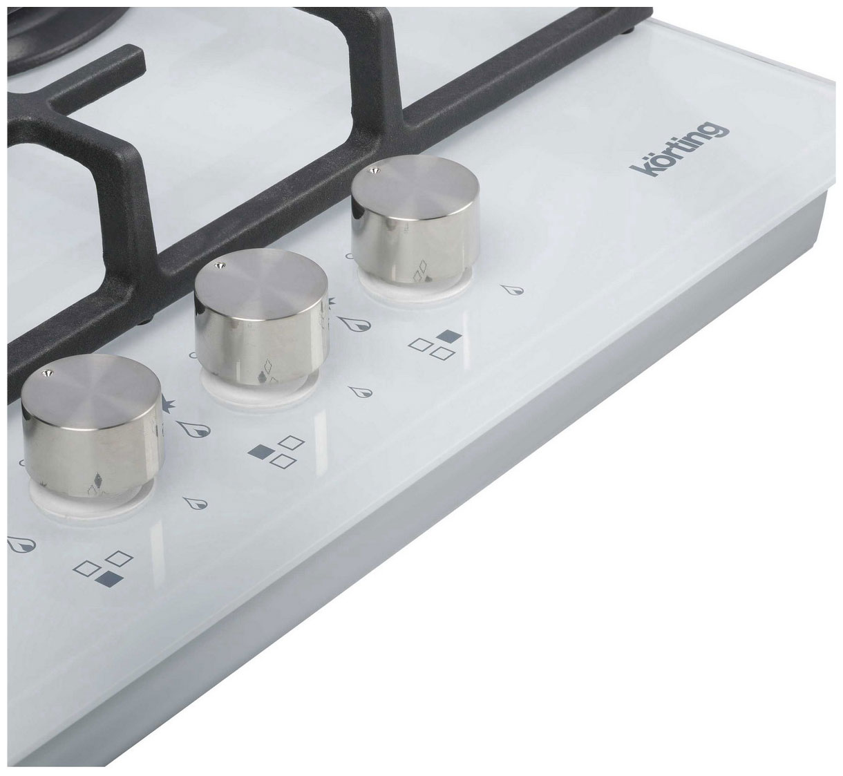 Описаниеповерхность газовая независимая, 45 см, газ на стекле, 3 конфорки, решетки чугунные, белый