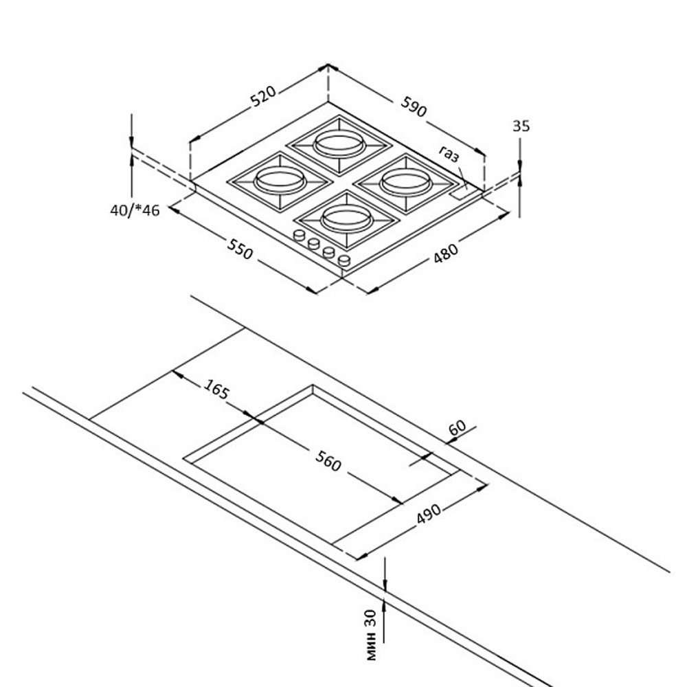 Описаниеповерхность газовая независимая, 60 см, газ на стекле, 4 конфорки, решетки чугунные, белый